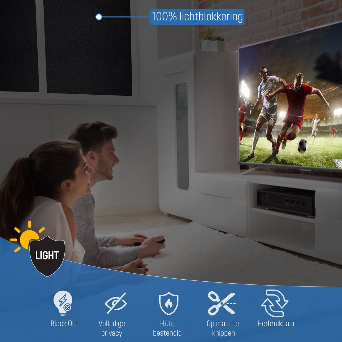 De blackout raamfolie is eenvoudig te bevestigen en te verwijderen, zonder lijm of plakresten. Hierdoor is de folie herbruikbaar en perfect voor wie flexibiliteit zoekt. Binnen enkele minuten creëer je een verduisterde en sfeervolle ruimte, zonder gedoe.