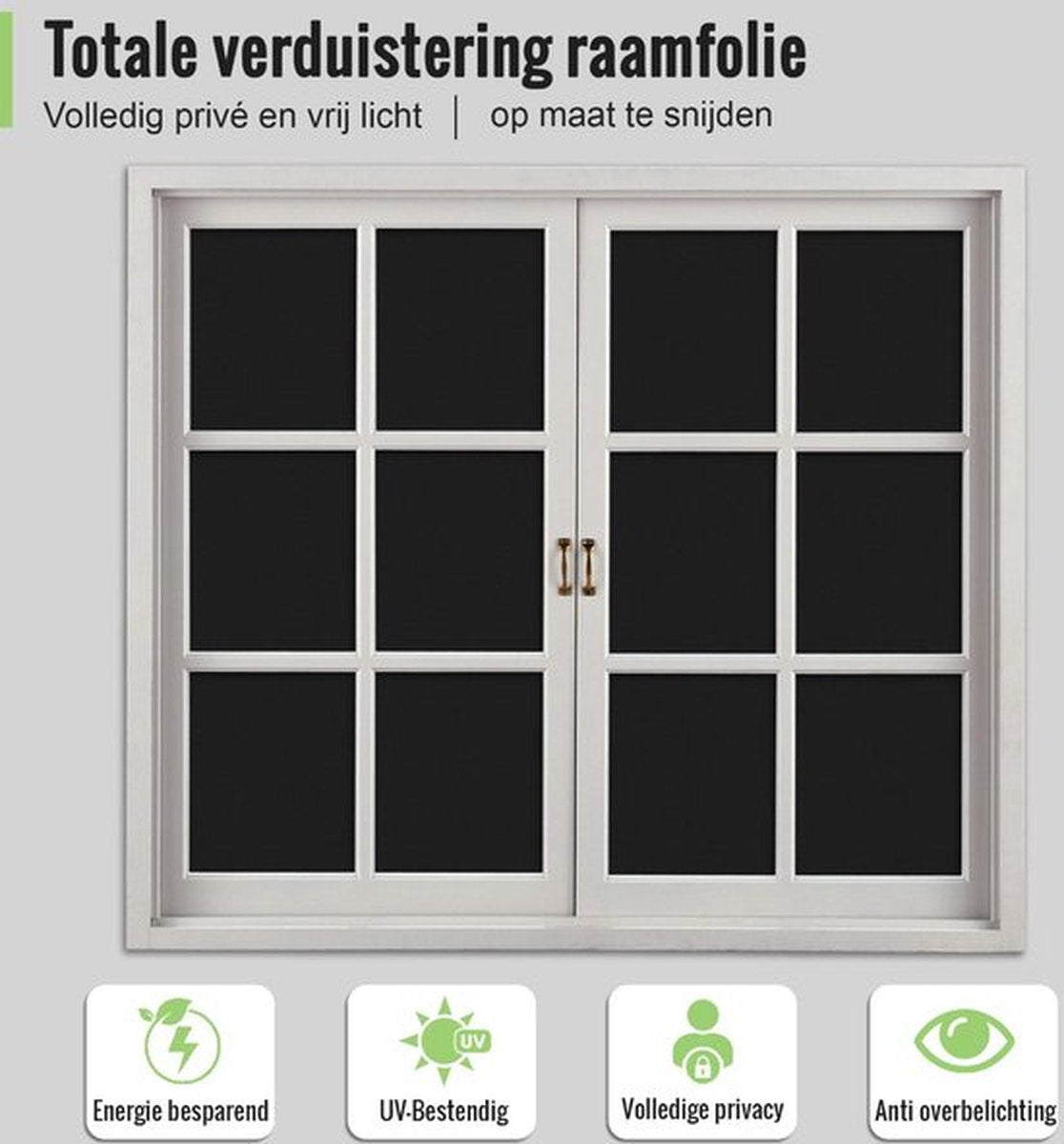 Op zoek naar een ideale oplossing voor een goede nachtrust? Ontdek nu onze verduisteringsfolie van Rock&Rose! Deze zwarte, verduisterende raamfolie zorgt voor een donkere en rustige sfeer in jouw slaapkamer. Naast het blokkeren van licht, is deze zonwerende folie ook isolerend en anti inkijk. Met een afmeting van 60 cm x 200cm is het perfect voor al jouw ramen. Een must-have voor een goede nachtrust!