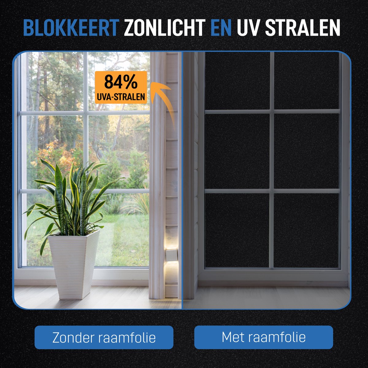 Verduisteringsfolie van Rock&Rose houdt nieuwsgierige ogen buiten. Bescherm je privacy en geniet van je ruimte zonder inkijk van buitenaf. Ideaal voor slaapkamers, badkamers en kantoren waar privacy van groot belang is.