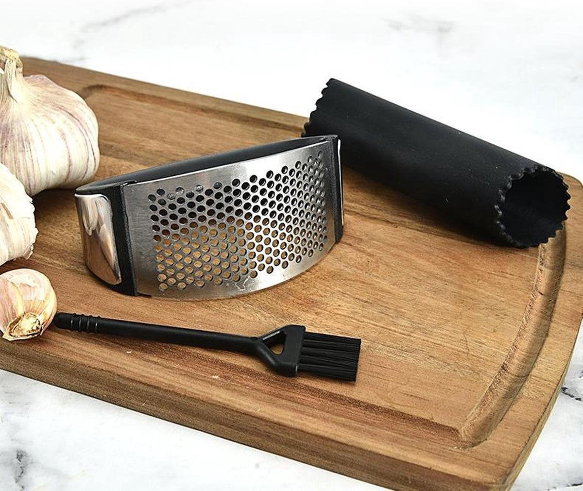 Bij deze garlic press met gratis accessoires ontvang je een siliconen peller en een borstel. Met de peller verwijder je de velletjes van knoflooktenen in één simpele beweging. De borstel maakt het schoonmaken eenvoudig door de kleine gaatjes vrij te maken van restjes. Deze extra hulpmiddelen zorgen voor nog meer gebruiksgemak en maken het product compleet.